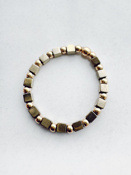 Super shiny, pewter gemstones in this neutral stunner 😍 Pyrite (aka Fool's Gold) gemstone cubes create the best sparkle, you'll never want to stop looking at her