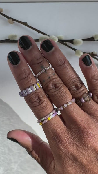 Stackable, glass beaded ring.