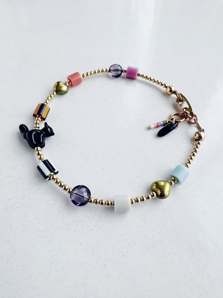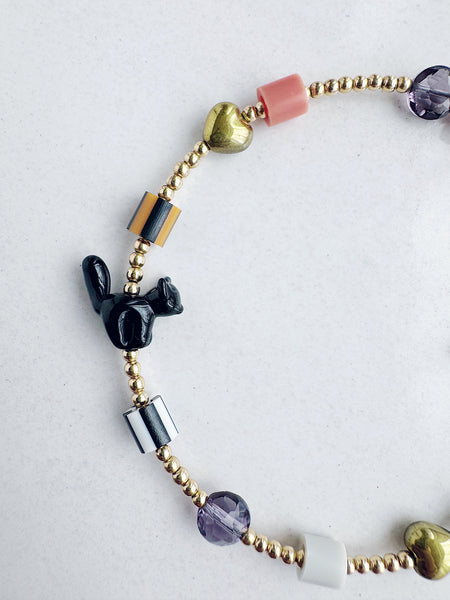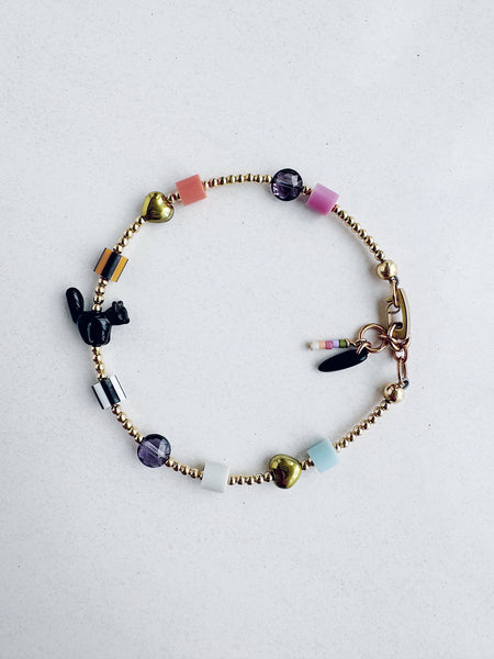 care : *** the center critter bead is made of lamp-worked GLASS. it can absolutely break if hit hard enough. this is a special bracelet you wear for the day (after applying cosmetics, clothing) and take off when you sleep / shower / swim / sweat *** other than that, ok to get wet, rinse and dry thoroughly . avoid excessive exposure to moisture, cosmetics, chemicals, rough wear