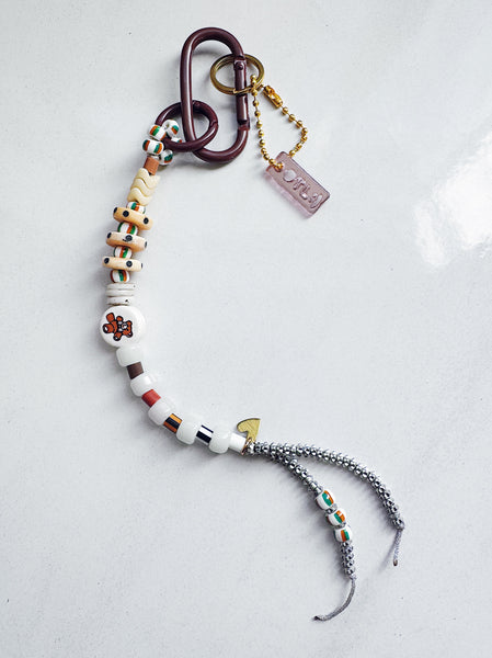 made with and assortment of vintage Czech glass beads, African trade beads, locally handmade lamp work skull bead, wood, silver plated brass, brass wood, melty beads and bone beads.